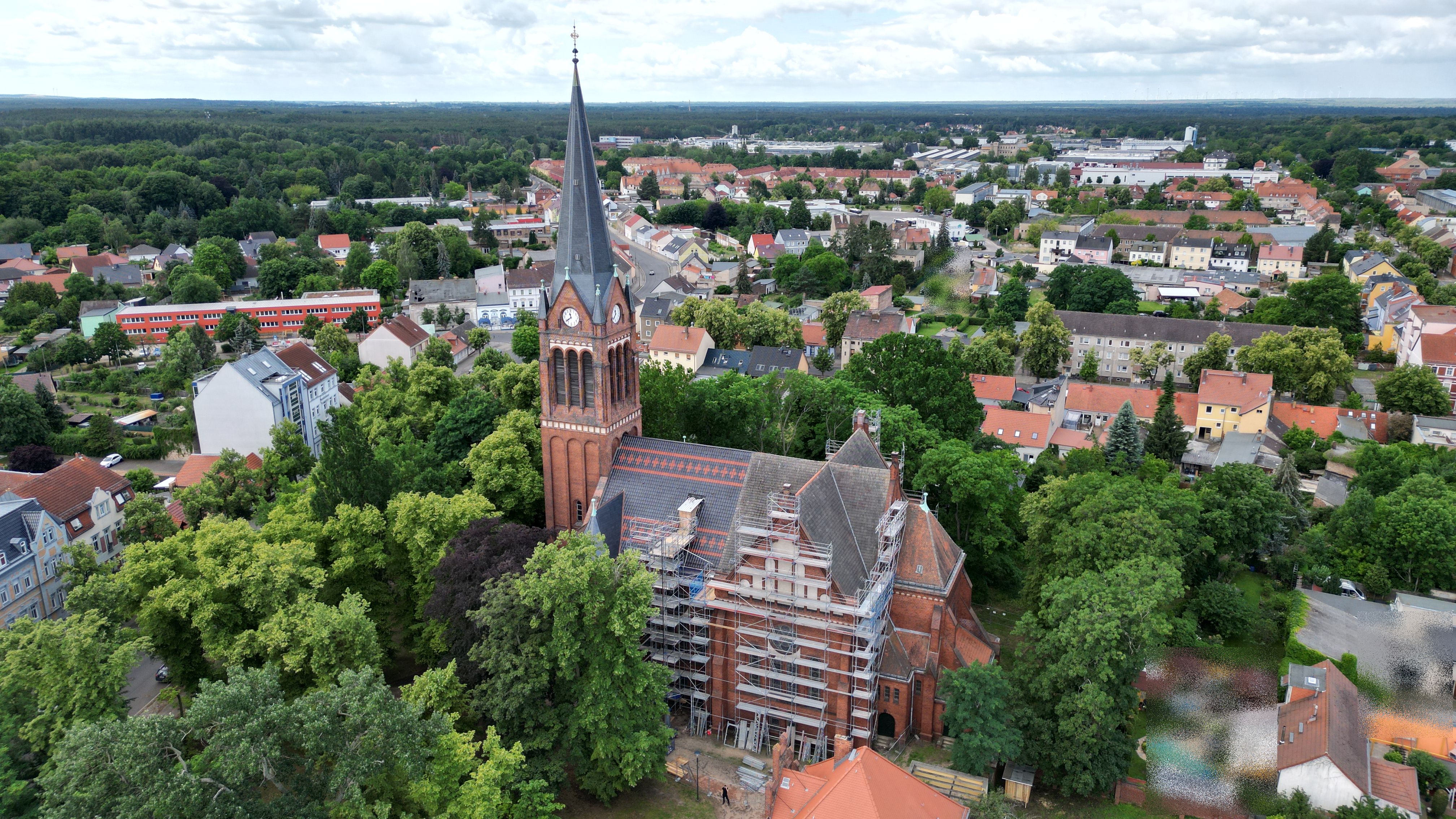 Die Fotos sind grandios! Wenn Sie Bild 1 heranzoomen, können Sie links neben der Jakobi-Turmspitze am Horizont St. Nikolai und den Wasserturm von Jüterbog erkennen.