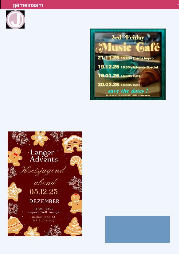 TischZeit, Wahlergebnisse OKR, Adventsfeier, Alternative Gottesdienstreihe